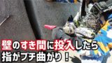 堤防壁のすき間に最新の穴釣り手袋にエビを付け投入したら指竿ブチ曲がった!!!【釣りスギ四平】