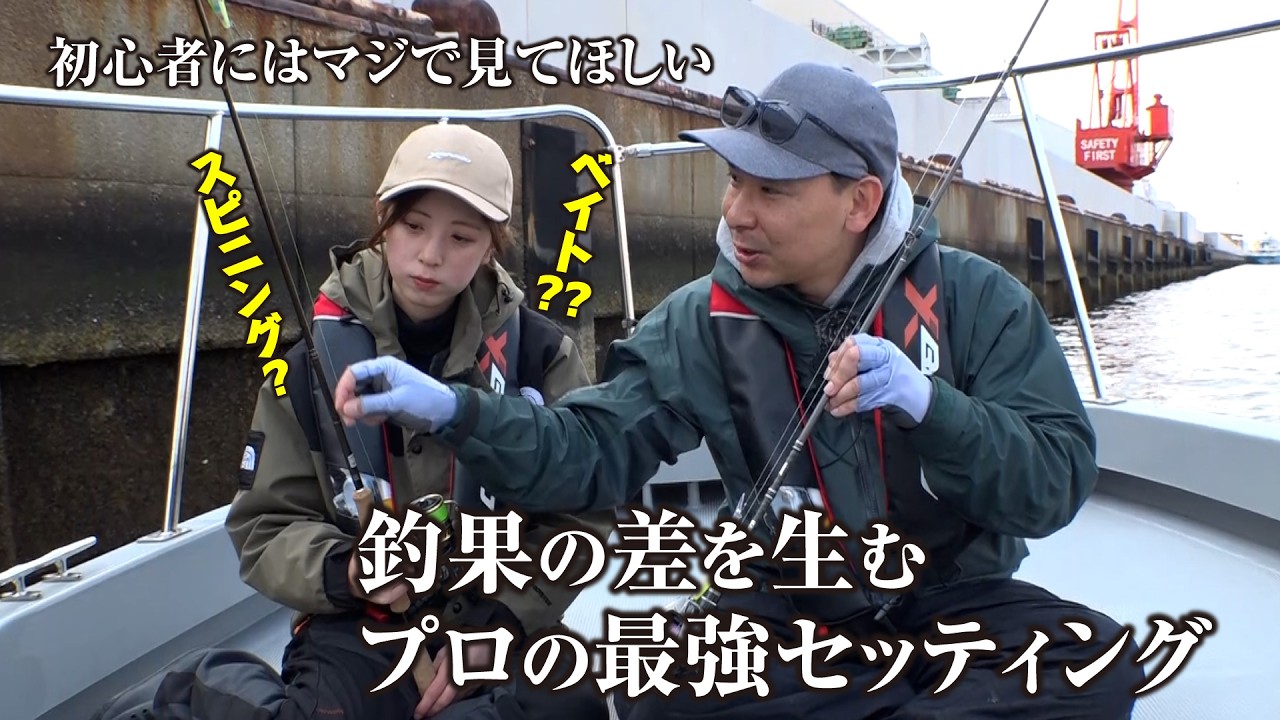 大阪湾の人気ターゲット・シーバスを日中と夜と2パターンで狙います。意気揚々と出船したXBRAIDのもんきーさんとリポーターのちあき。狙い通りにルアーを動かせば強い引きが!