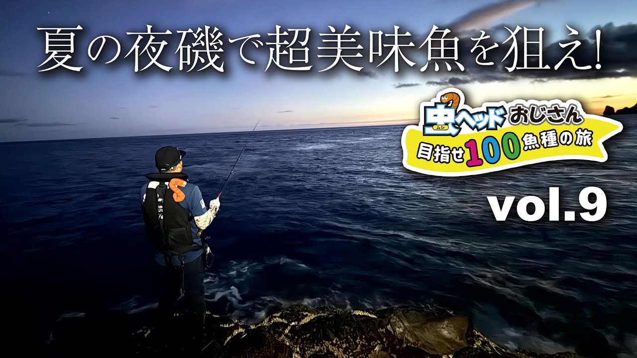 今回は「虫ヘッドおじさん目指せ100魚種の旅 #09【夏の夜磯で超美味魚を狙え!】』です!